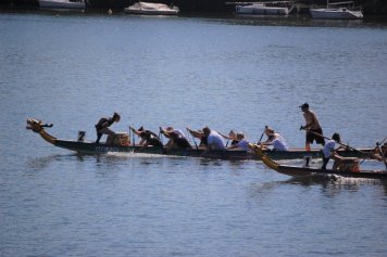 Ten jeden jediný den, kdy bude zřejmě možno i příští rok CombaHrocha zahlédnout, se ze zatím neznámých důvodů přesně kryje s charitativním závodem dračích lodí, pořádaným nadačním fondem Modrý hroch (termín bude samozřejmě oznámen, sledujte další vývoj). Možná CombaHrocha láká sofistikovaný program daného dne, který samozřejmě nechyběl ani tuto neděli. Soutěž týmů v přetahování lanem, hodnotná tombola se spoustou cen, řízná muzika, príma občerstvení (ledová káva byla prostě super), objednané hezké počasí (dorazilo v míře snad až převeliké), hrdinští plavci a lodičky motající se v závodních drahách, sem-tam parník s vlnobitím a spřáteleným kapitánem, prostě žůžo.